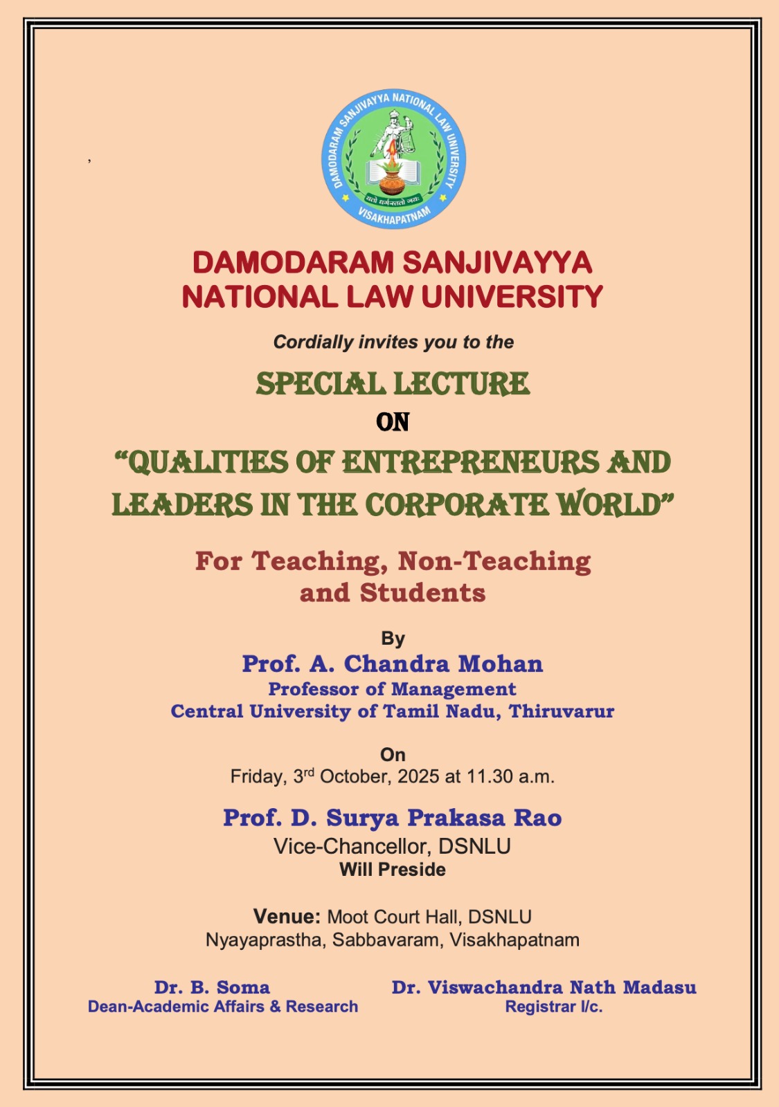 Special Lecture by Prof. A. Chandra Mohan, Central University of Tamil Nadu on 03-10-25.