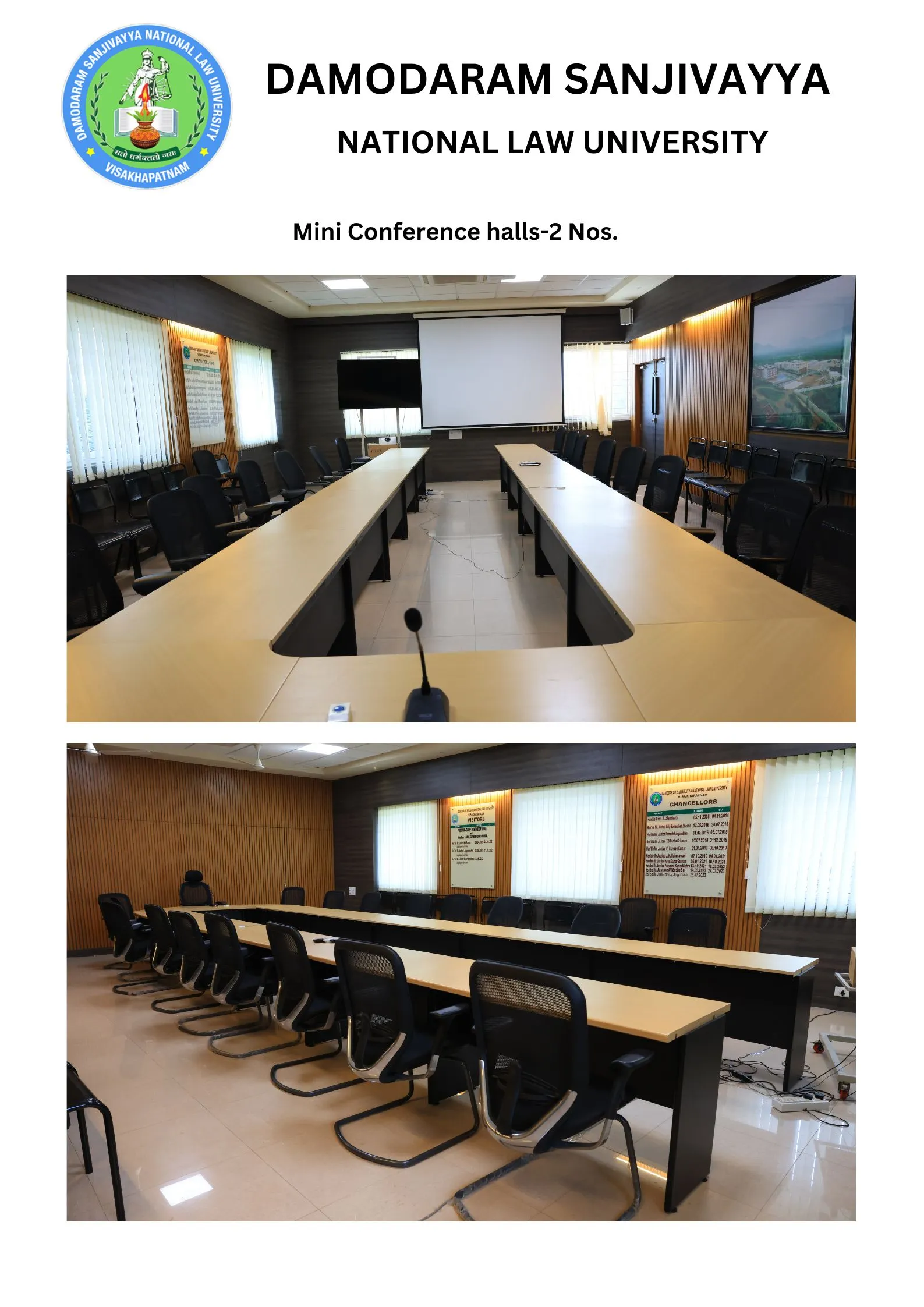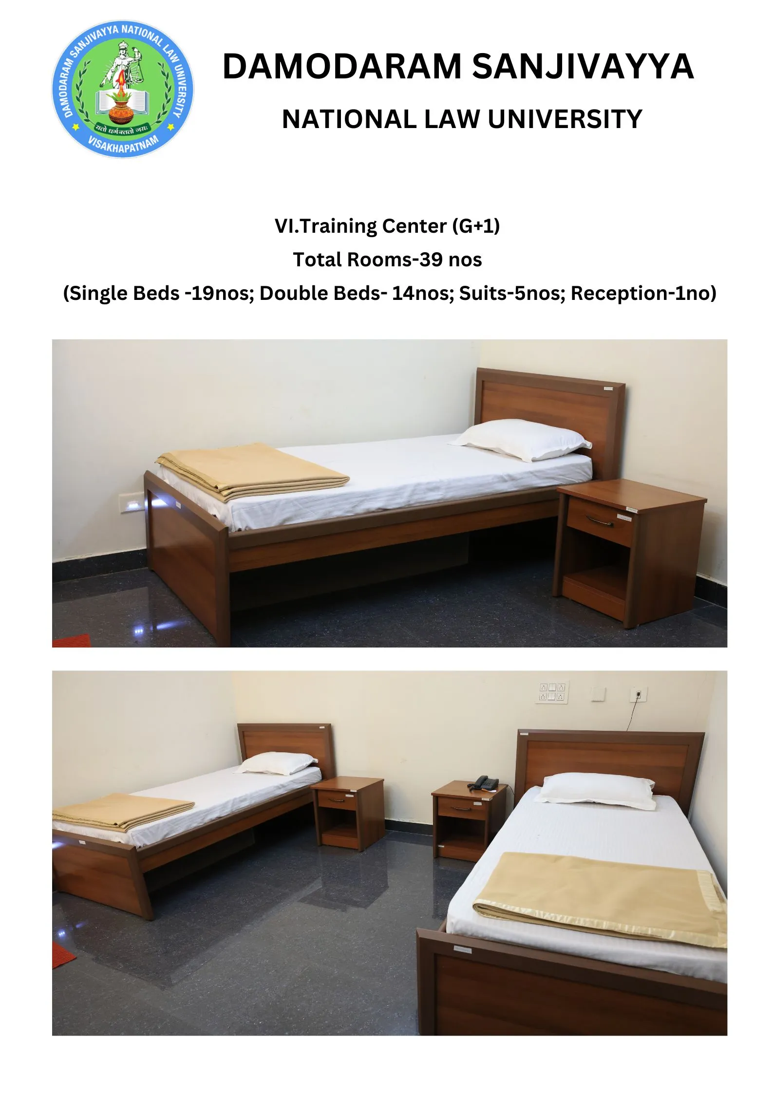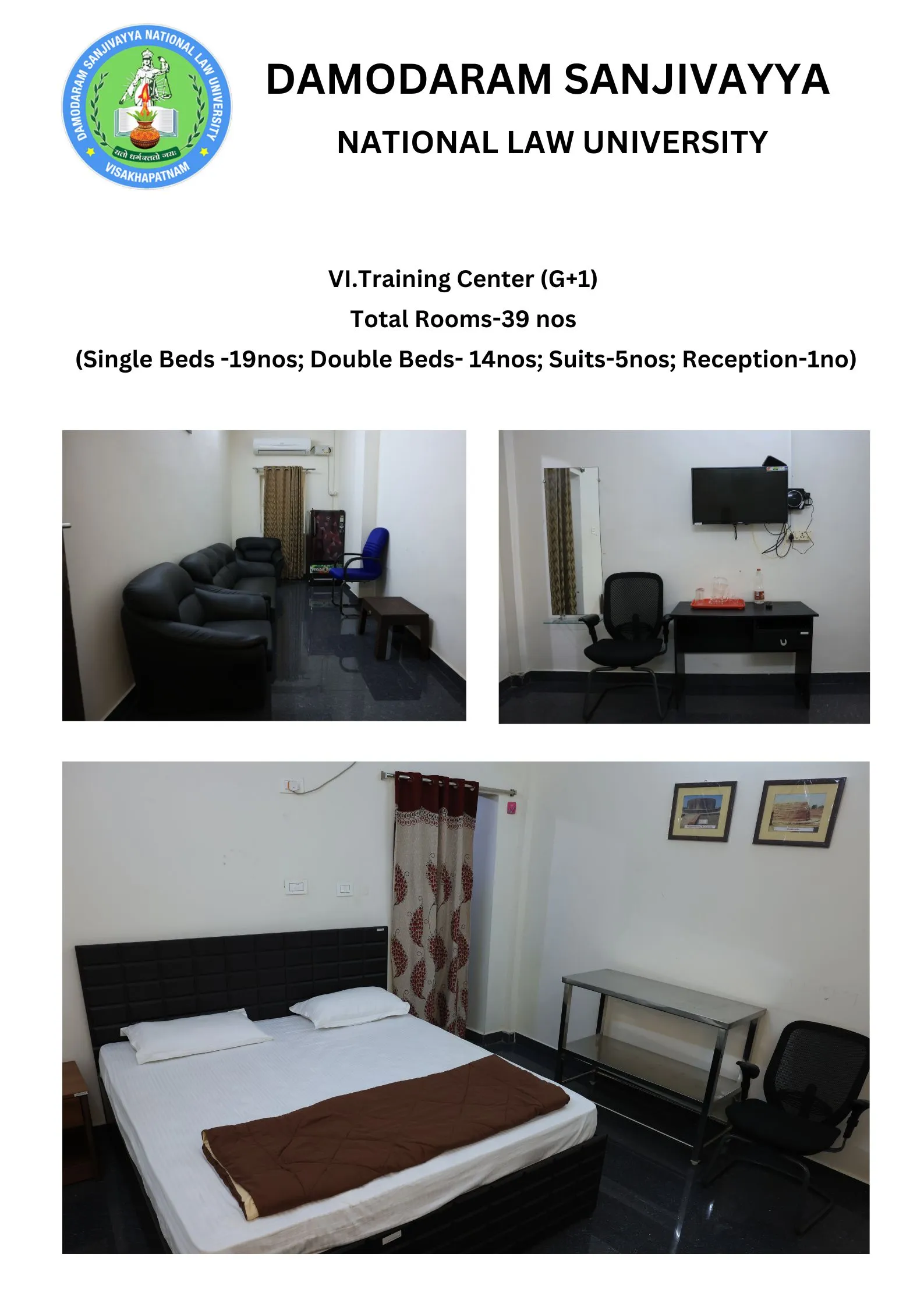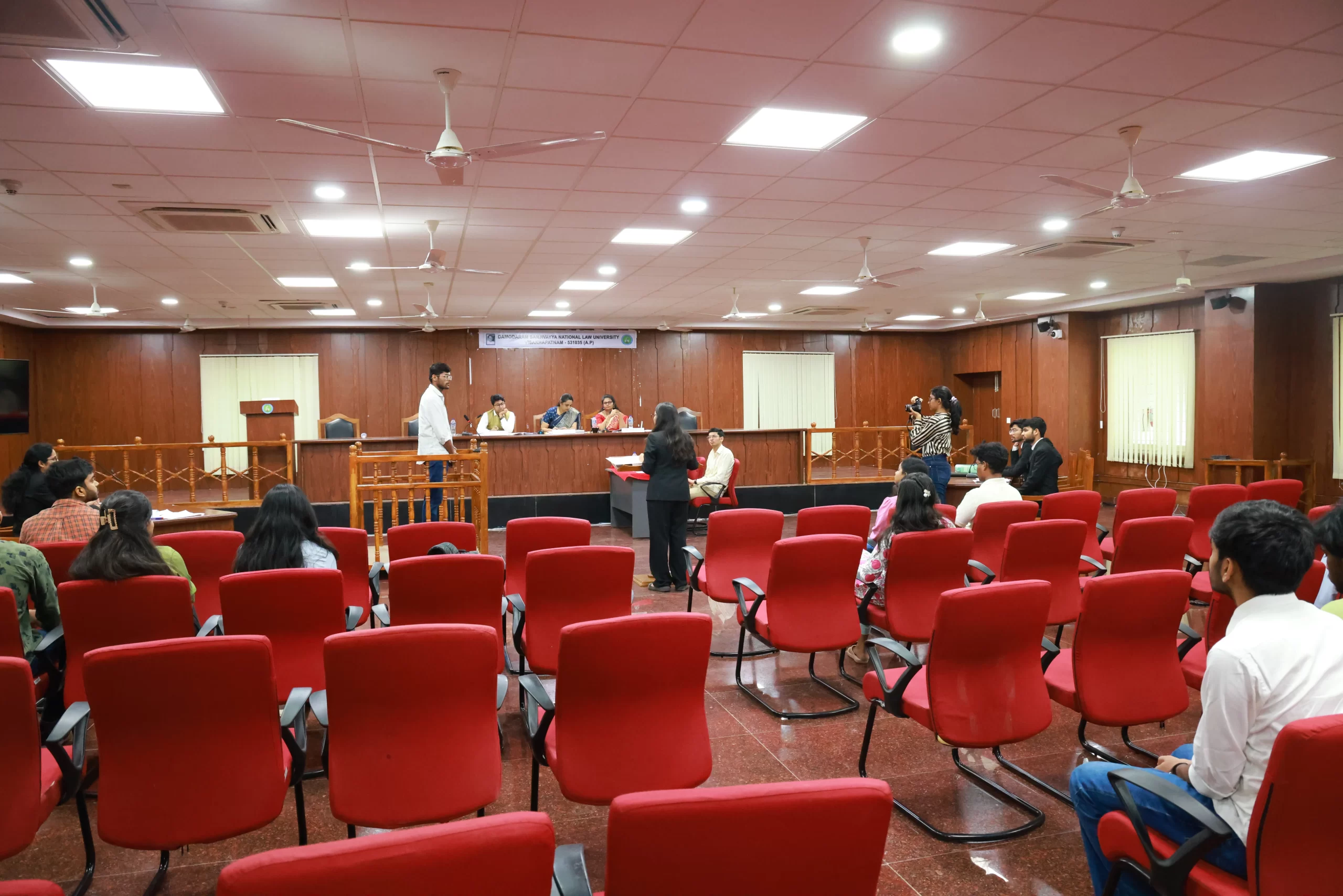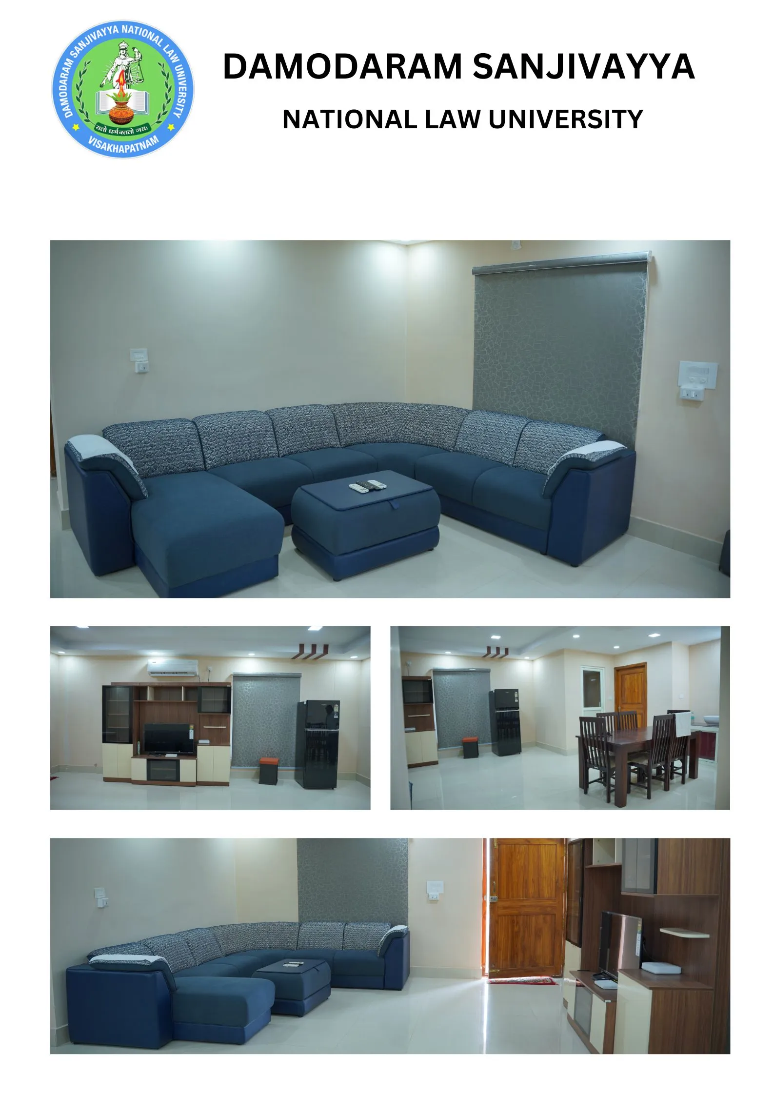 DSNLU state-of-the-art, technologically advanced and eco-friendly campus is situated in 45.5 acres abutting the hill. DSNLU campus has fully air-conditioned Academic Block, Wi-Fi enabled with LAN facility. The University is a part of National Knowledge Network whereas the Government of India has provided 1GBPS connectivity to the University. Boys and Girls Hostels consists of 160 rooms each with two students’ accommodation in a room as per the University Rules. DSNLU has canteen building accommodating 350 students at a time. DSNLU has 11 KV Sub-station with two 320 KVA backup generators, 1.5 KLD capacity Sewage Treatment Plant, Andhra Bank ATM. 350 Kwp Roof Top Solar Power Plant is also established. The students are facilitated with a world-class library which provides access to online resources like Westlaw India, Hein Online, SCC online, Lexis Nexis, Kluwer Competition Law, Kluwer IP Law, Kluwer Arbitration, Taxmann, JSTOR, Economic and Political Weekly and Manupatra for intensive research. The online resources are available through RemoteXs. Further, DSNLU adopts Turnitin, an anti-plagiarism web tool. All the classrooms are equipped with LCD projectors, internet and public address system. DSNLU Moot Court Hall is a splendor in its own way. The University has seminar and conference hall that are made available for conducting meetings and organizing guest lectures.