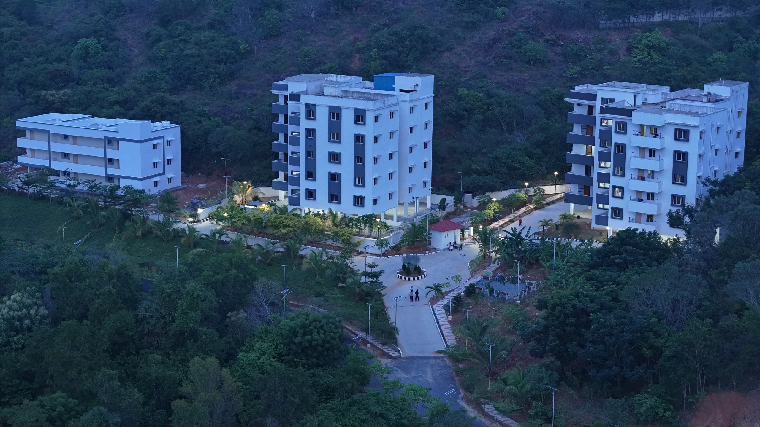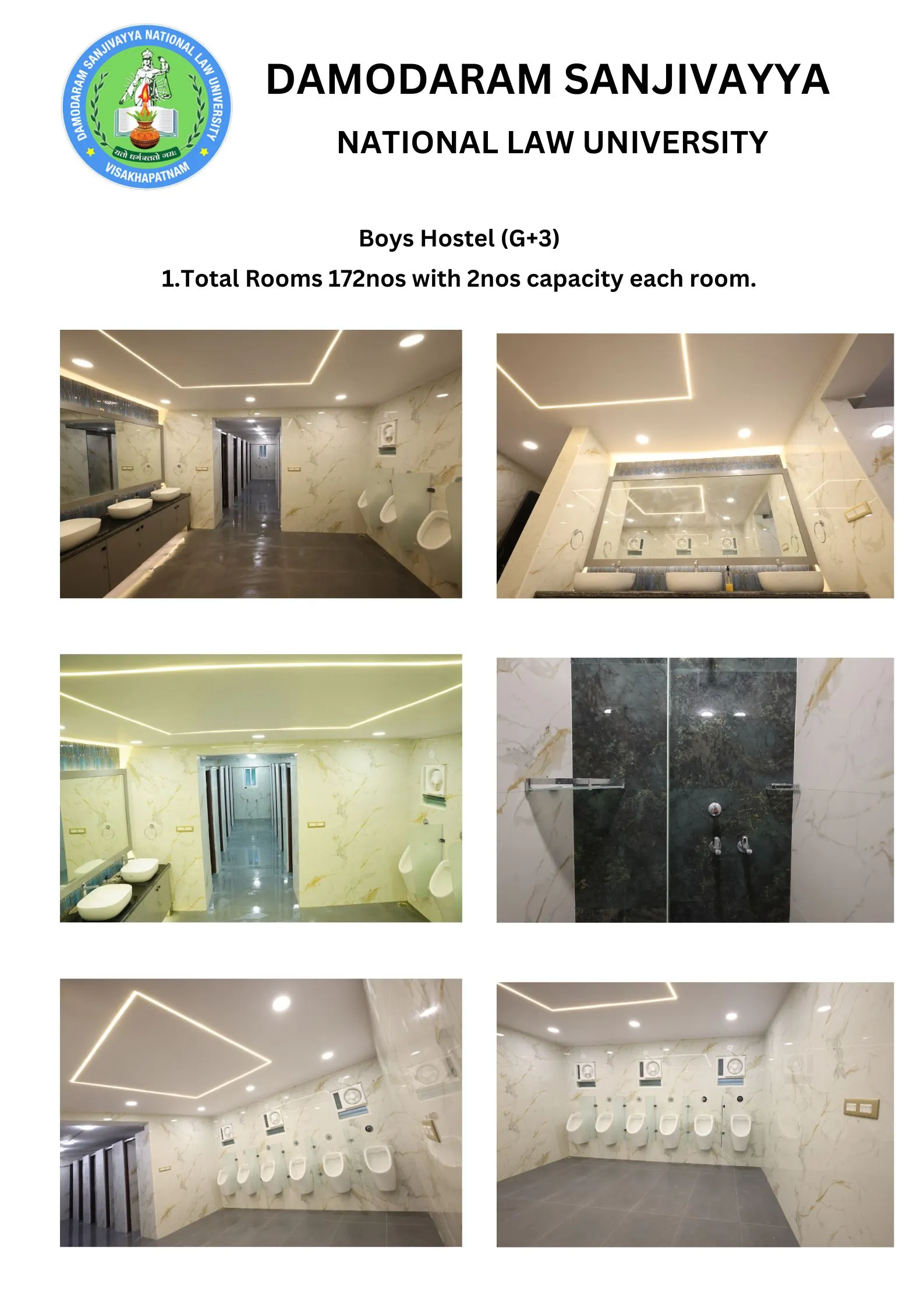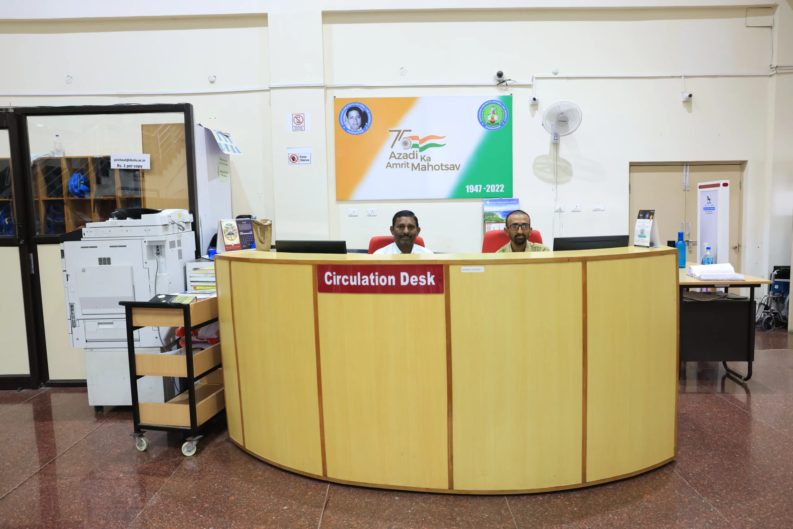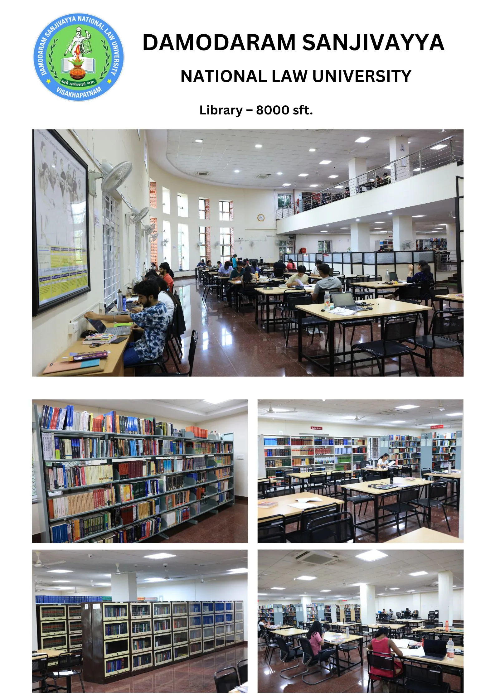 DSNLU state-of-the-art, technologically advanced and eco-friendly campus is situated in 45.5 acres abutting the hill. DSNLU campus has fully air-conditioned Academic Block, Wi-Fi enabled with LAN facility. The University is a part of National Knowledge Network whereas the Government of India has provided 1GBPS connectivity to the University. Boys and Girls Hostels consists of 160 rooms each with two students’ accommodation in a room as per the University Rules. DSNLU has canteen building accommodating 350 students at a time. DSNLU has 11 KV Sub-station with two 320 KVA backup generators, 1.5 KLD capacity Sewage Treatment Plant, Andhra Bank ATM. 350 Kwp Roof Top Solar Power Plant is also established. The students are facilitated with a world-class library which provides access to online resources like Westlaw India, Hein Online, SCC online, Lexis Nexis, Kluwer Competition Law, Kluwer IP Law, Kluwer Arbitration, Taxmann, JSTOR, Economic and Political Weekly and Manupatra for intensive research. The online resources are available through RemoteXs. Further, DSNLU adopts Turnitin, an anti-plagiarism web tool. All the classrooms are equipped with LCD projectors, internet and public address system. DSNLU Moot Court Hall is a splendor in its own way. The University has seminar and conference hall that are made available for conducting meetings and organizing guest lectures.