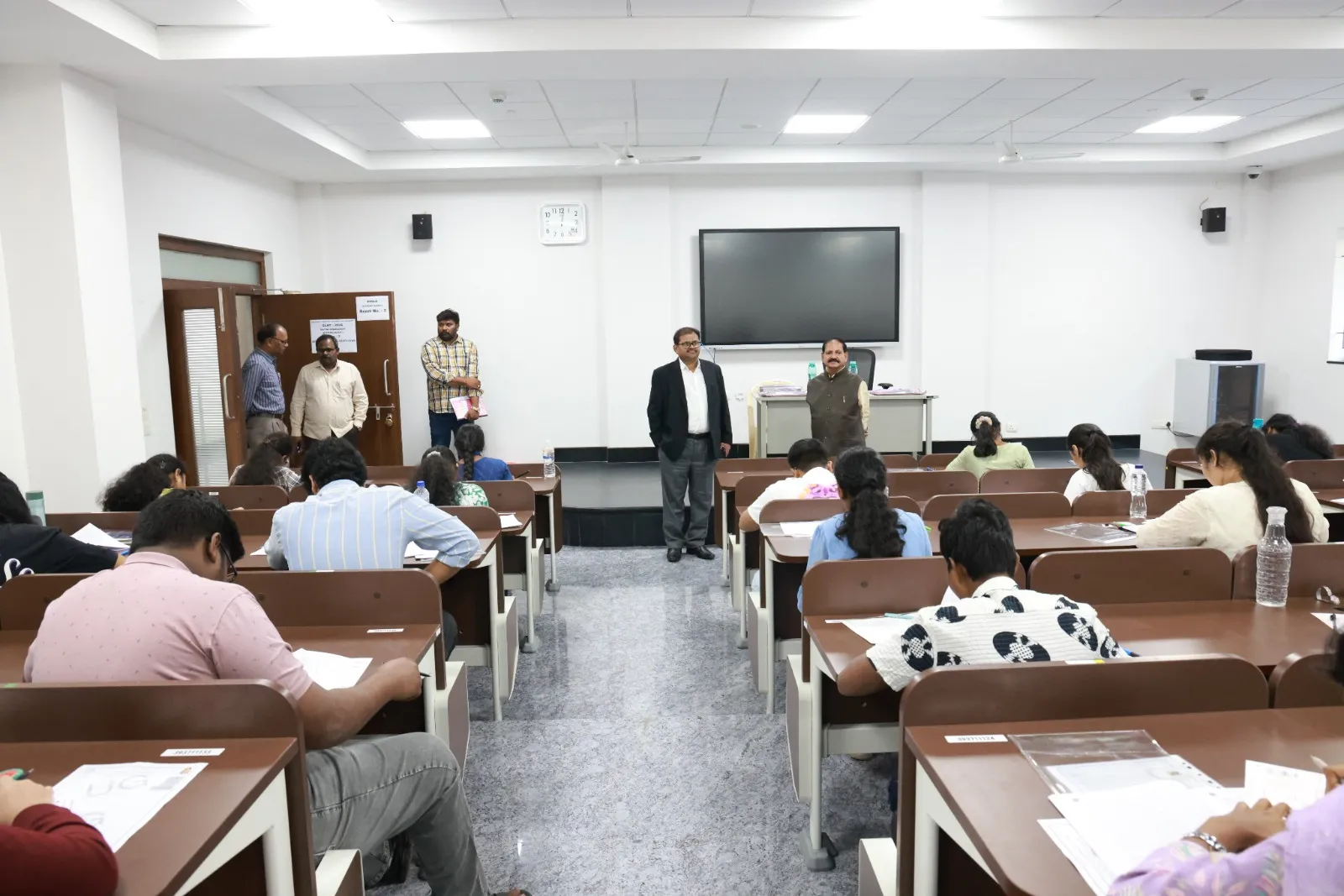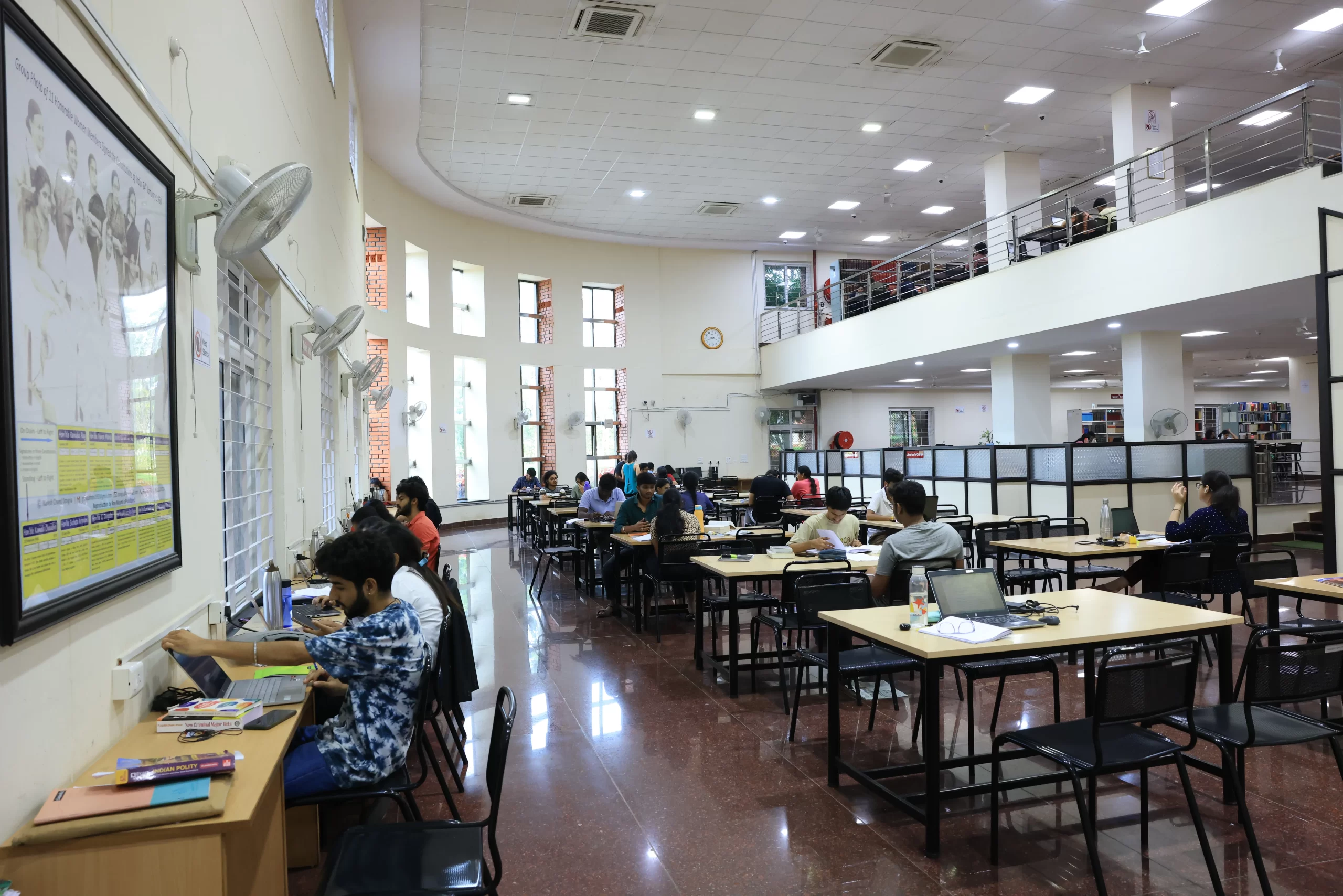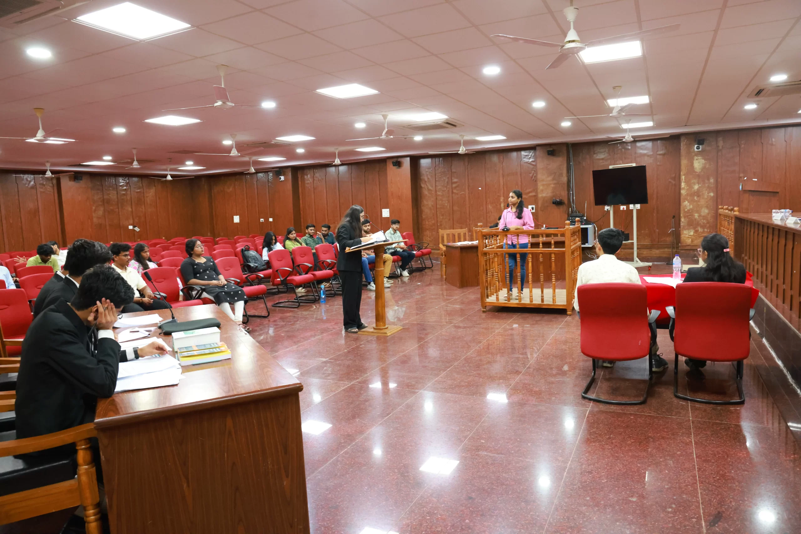 Academic Block is fully air conditioned and disabled friendly with fire & safety equipment. The Infrastructure consists of 11 Class Rooms, 400 seater Seminar Hall, 2 Conference Halls, Moot Court Hall and Library. The Academic Block is fully connected with WIFI & LAN facility provided by 1GBPs NKN-MHRD all the class rooms and seminars halls are provided with public address systems and LCD projectors.Academic Block Pics