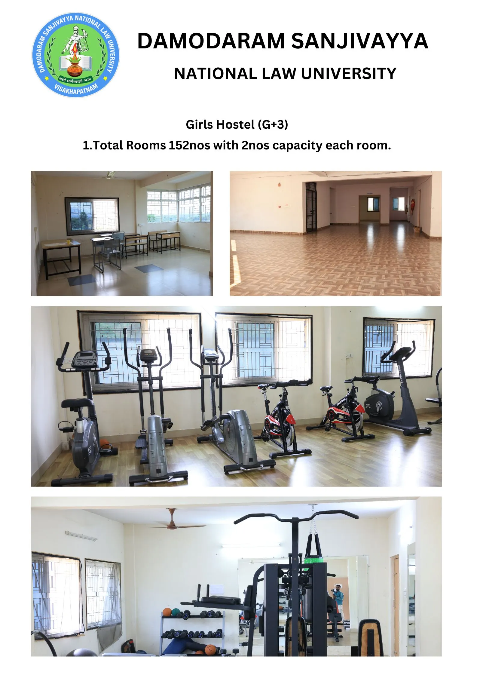 Hostels for Boys and Girls have 160 rooms each on twin sharing basis and amenities including solar powered Hot water/ R.O. for drinking water / WI-FI and LAN. Two Badminton courts and table Tennis Boards and Gym with Latest equipment are available in both the HostelsMESS